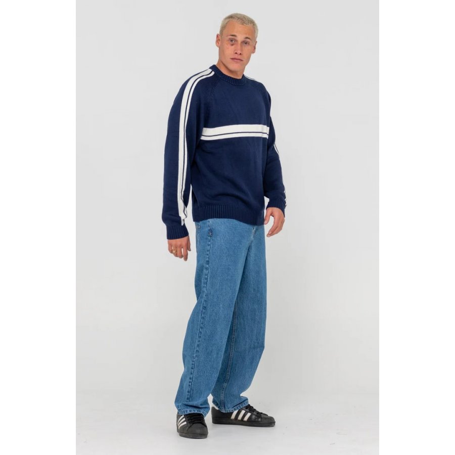 RUSTY WHITE LINES 2.0 KNITTED CREW NAVY BLUE