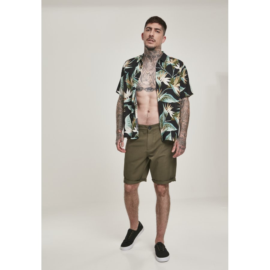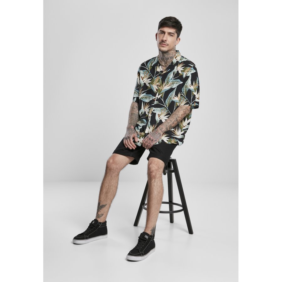 Shaped for leisure and equipped with a floral print this men's shirt provides authentic summer spirit. It is made with short sleeves, a rolled-up collar and a simple button placket for closure. The summery men's shirt is made of viscose and offers a regular fit.