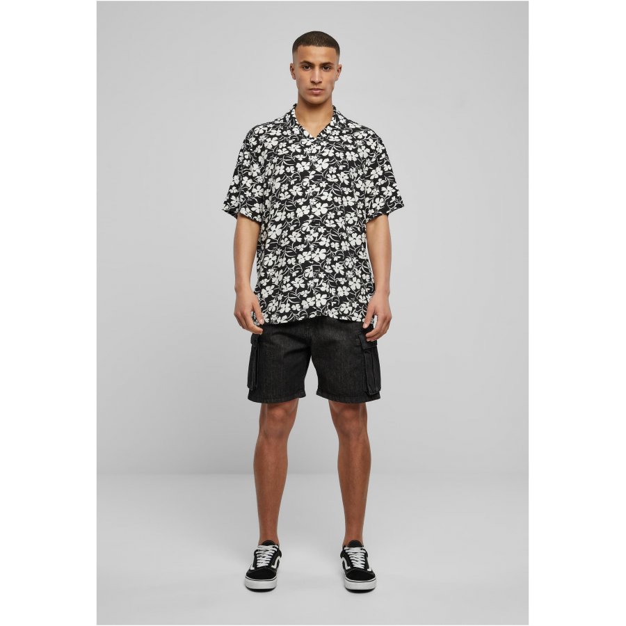 Shaped for leisure and equipped with a floral print this men's shirt provides authentic summer spirit. It is made with short sleeves, a rolled-up collar and a simple button placket for closure. The summery men's shirt is made of viscose and offers a regular fit.